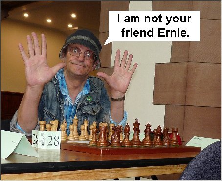 We end the jollity with White threatening mate 4 times in the first 7 moves.