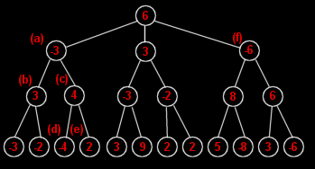 The best move from the original position is whichever move resulted in the root node being valued at +6. In this case that move was the one that resulted in the position at node f, the worst position for the opponent.